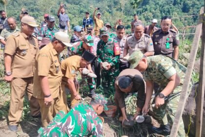 Memo Indonesia.my.id | Bondowoso – Komandan Kodim 0822 Bondowoso Letkol Inf Prawito bersama jajaran Forkopimda menghadiri kegiatan Ground Breaking dan Zoom Pembangunan Jembatan Perintis Garuda “Negara...
