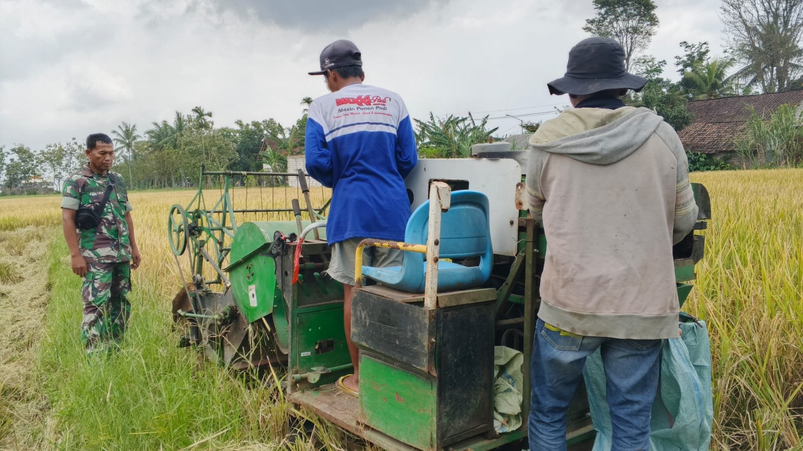 Dengan penuh semangat, Babinsa ikut membantu dan memantau proses panen menggunakan mesin combine harvester, sekaligus memberikan motivasi kepada para petani agar tetap semangat dalam meningkatkan produksi pertanian.