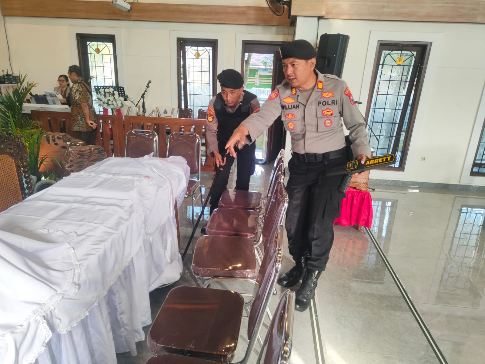 Sejak sebelum kegiatan dimulai, aparat kepolisian telah menerapkan prosedur pengamanan secara menyeluruh dan terukur. Sterilisasi lokasi menjadi langkah awal yang dilakukan Tim Samapta Polres Bondowoso di bawah komando Kasat Samapta AKP William Yustaf S H. Tim menyisir seluruh area gereja, mulai dari ruang ibadah, altar, kursi jemaat, hingga titik akses keluar masuk, menggunakan peralatan detektor logam dan perangkat pendukung lainnya guna mengantisipasi potensi ancaman berbahaya.