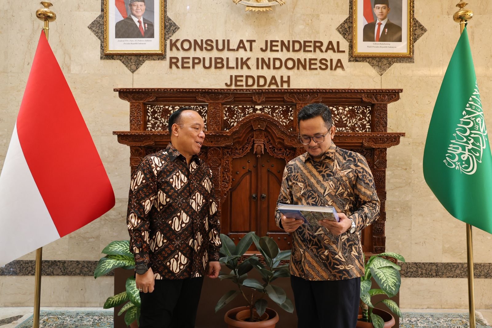 Penyerahan buku tersebut diterima langsung oleh Konsulat Jenderal RI di Jeddah, Yusron Bahauddin Ambary, sekaligus menjadi simbol penguatan peran perwakilan Indonesia di luar negeri dalam menyampaikan narasi kebijakan nasional secara lebih inklusif dan mudah dipahami oleh komunitas internasional.